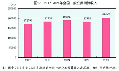 全年全國一般公共預(yù)算收入202539億元,比上年增長(zhǎng)10.7%,其中稅收收入172731億元,增長(zhǎng)11.9%。全國一般公共預(yù)算支出246322億元,比上年增長(zhǎng)0.3%。全年新增減稅降費(fèi)約1.1萬億元。(見圖17)