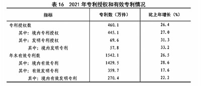 全年研究與試驗(yàn)發(fā)展(R&D)經(jīng)費(fèi)支出27864億元,比上年增長(zhǎng)14.2%,與國內(nèi)生產(chǎn)總值之比為2.44%,其中基礎(chǔ)研究經(jīng)費(fèi)1696億元。國家自然科學(xué)基金共資助4.87萬個(gè)項(xiàng)目。截至年末,正在運(yùn)行的國家重點(diǎn)實(shí)驗(yàn)室533個(gè),納入新序列管理的國家工程研究中心191個(gè),國家企業(yè)技術(shù)中心1636家,大眾創(chuàng)業(yè)萬眾創(chuàng)新示范基地212家。國家科技成果轉(zhuǎn)化引導(dǎo)基金累計(jì)設(shè)立36支子基金,資金總規(guī)模624億元。國家級(jí)科技企業(yè)孵化器[60]1287家,國家備案眾創(chuàng)空間[61]2551家。全年授予專利權(quán)460.1萬件,比上年增長(zhǎng)26.4%;PCT專利申請(qǐng)受理量[62]7.3萬件。截至年末,有效專利1542.1萬件,其中境內(nèi)有效發(fā)明專利270.4萬件。每萬人口高價(jià)值發(fā)明專利擁有量[63]7.5件。全年商標(biāo)注冊(cè)773.9萬件,比上年增長(zhǎng)34.3%。全年共簽訂技術(shù)合同67萬項(xiàng),技術(shù)合同成交金額37294億元,比上年增長(zhǎng)32.0%。(見圖20)(見表16)