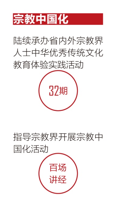 山東不斷創(chuàng)新探索宗教中國(guó)化的形式和內(nèi)容,教育引導(dǎo)宗教界人士和信教群眾培育和踐行社會(huì)主義核心價(jià)值觀、弘揚(yáng)中華優(yōu)秀傳統(tǒng)文化,不斷增進(jìn)“五個(gè)認(rèn)同”。加強(qiáng)理論研究,發(fā)揮儒家文化發(fā)祥地和紅色文化富集地優(yōu)勢(shì),成立山東省民族宗教研究會(huì)、山東宗教界優(yōu)秀傳統(tǒng)文化教育實(shí)踐基地,先后舉辦“儒學(xué)與宗教中國(guó)化”研討會(huì)、宗教中國(guó)化座談會(huì)等活動(dòng)。強(qiáng)化教育引導(dǎo),陸續(xù)承辦了32期省內(nèi)外宗教界人士中華優(yōu)秀傳統(tǒng)文化教育體驗(yàn)實(shí)踐活動(dòng),指導(dǎo)宗教界開(kāi)展了宗教中國(guó)化“百場(chǎng)講經(jīng)”活動(dòng),常態(tài)化抓好宗教場(chǎng)所“四進(jìn)”活動(dòng),努力推動(dòng)宗教教義與齊魯文化有機(jī)融合,取得了春風(fēng)化雨、潤(rùn)物無(wú)聲的良好效果。