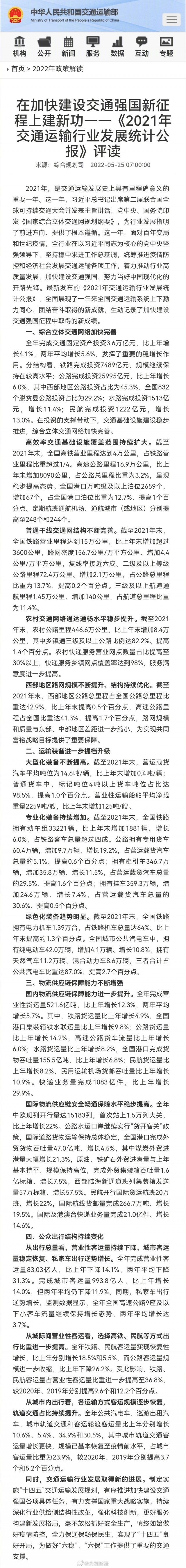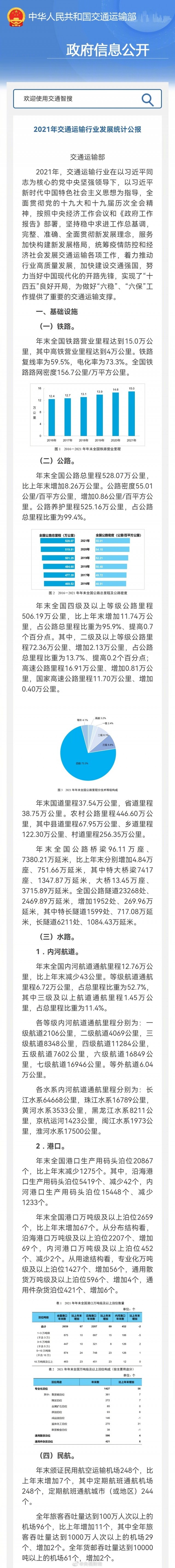 - 《2021年交通運(yùn)輸行業(yè)發(fā)展統(tǒng)計公報》發(fā)布 我國綜合立體交通網(wǎng)絡(luò)加快完善