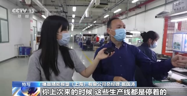 福益精密模塑(上海)有限公司總經(jīng)理 戴國濤:我們得到了政府部門的大力支持,從目前來看,我們的生產恢復還是非???。我們6月1日早上人進來,然后到晚班的時候我們已經(jīng)100%恢復了。