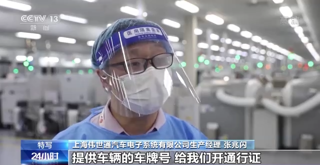 上海偉世通汽車電子系統(tǒng)有限公司生產經(jīng)理 張兆閃:物流通道方面說真的政府也已經(jīng)給了我們很多的支持,比如說提供車輛的車牌號和給我們開通行證等。