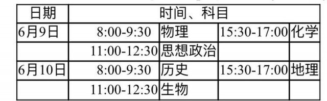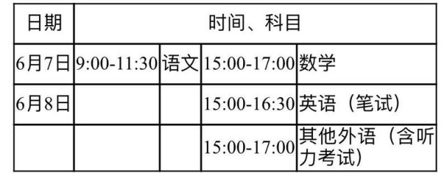 統(tǒng)一高考時間安排