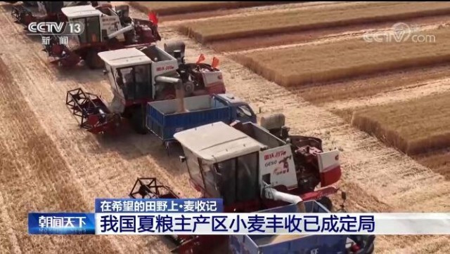 央視網(wǎng)消息:夏糧是全年糧食生產(chǎn)第一季,產(chǎn)量占全年糧食產(chǎn)量五分之一多,其中90%以上都是小麥。農(nóng)業(yè)農(nóng)村部22日發(fā)布的小麥機(jī)收進(jìn)度顯示,夏糧主產(chǎn)區(qū)小麥大規(guī)模機(jī)收基本結(jié)束,豐收已成定局。