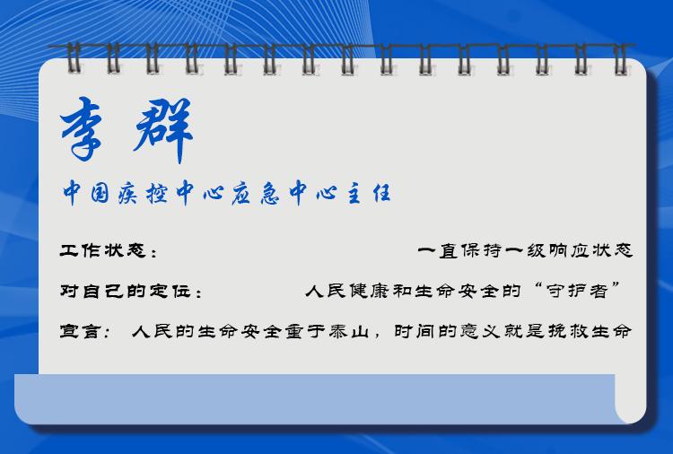 2019年12月31日一早,李群隨中國疾控中心工作組趕赴武漢,同時作為國家衛(wèi)生健康委專家組成員參加工作。他參加制定了《武漢不明原因的病毒性肺炎密切接觸者管理方案》和《應(yīng)急監(jiān)測方案》。他提出的對密接人員進行14天醫(yī)學觀察,此后成為密接人員管理的通用做法。
