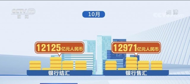國家外匯管理局最新數(shù)據(jù)顯示,10月,銀行結匯12125億元人民幣,售匯12971億元人民幣。10月,銀行代客涉外收入30991億元人民幣,對外付款31597億元人民幣。