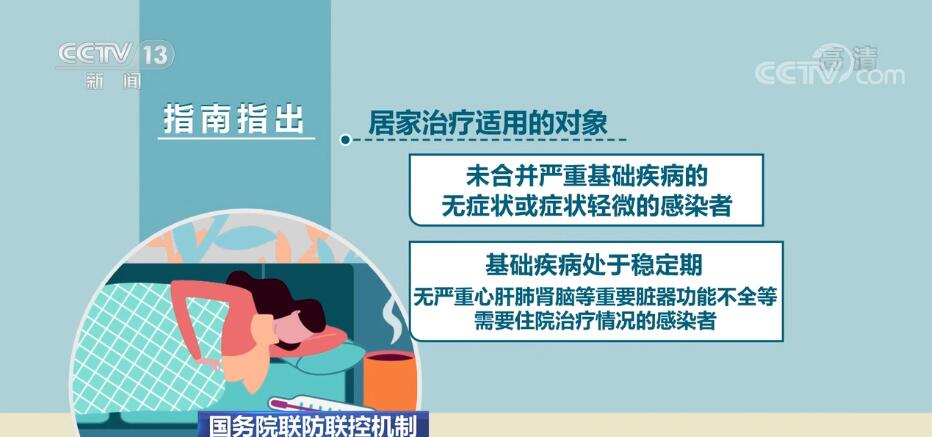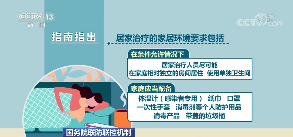 央視網(wǎng)消息:今天(12月8日),國務(wù)院聯(lián)防聯(lián)控機(jī)制發(fā)布了《新冠病毒感染者居家治療指南》。被新冠病毒感染了,哪些情況可以居家治療?居家期間如何做好防護(hù)?《指南》對這些問題作出了具體的指導(dǎo)。