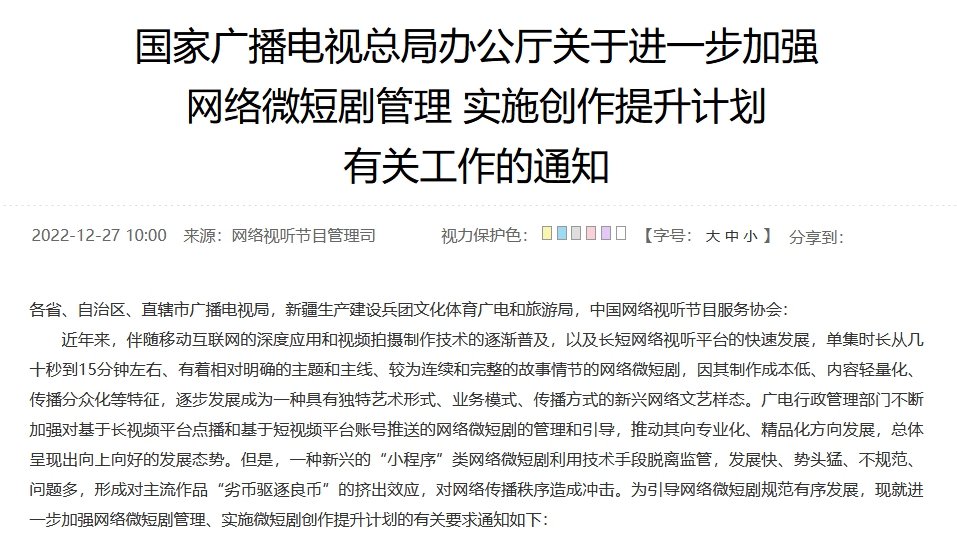 國(guó)家廣電總局開(kāi)展“小程序”類網(wǎng)絡(luò)微短劇專項(xiàng)整治