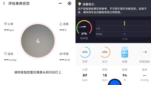 沙憲政分析稱,網(wǎng)上類似小程序和手機(jī)App是經(jīng)由手機(jī)攝像頭攝像,通過測(cè)量人體手指尖或面部動(dòng)脈血管隨心臟搏動(dòng)引起充盈的波動(dòng)和顏色的變化(也就是光譜分析),來(lái)檢測(cè)心率和血氧飽和度等指標(biāo)的。