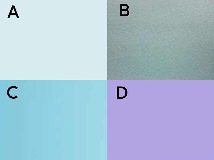 2、“青綠千載,山河無垠”。自打在2022年春晚上亮相后,舞蹈詩劇《只此青綠》持續(xù)出圈的同時,更多人開始關注中國傳統(tǒng)色彩美學。請問下列選項中,“雪青色”是哪一項?