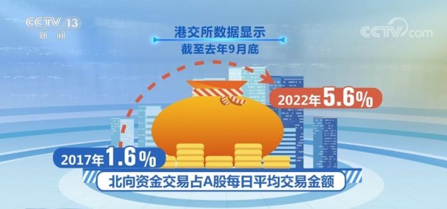 事實(shí)上,北向資金從去年末就在持續(xù)加大對中國資產(chǎn)的配置。國際金融協(xié)會(huì)統(tǒng)計(jì)顯示,去年11月流入中國資本市場的資金達(dá)85億美元,創(chuàng)去年單月新高。港交所數(shù)據(jù)顯示,截至去年9月底,北向資金交易占A股每日平均交易金額,由2017年的1.6%,升至2022年的5.6%。