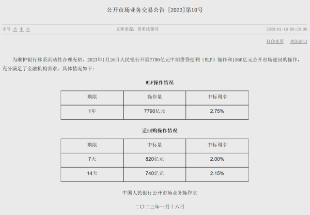其中,MLF操作期限為1年,中標(biāo)利率2.75%;7天期逆回購(gòu)操作中標(biāo)量為820億元,中標(biāo)利率2%;14天期逆回購(gòu)操作中標(biāo)量為740億元,中標(biāo)利率2.15%。