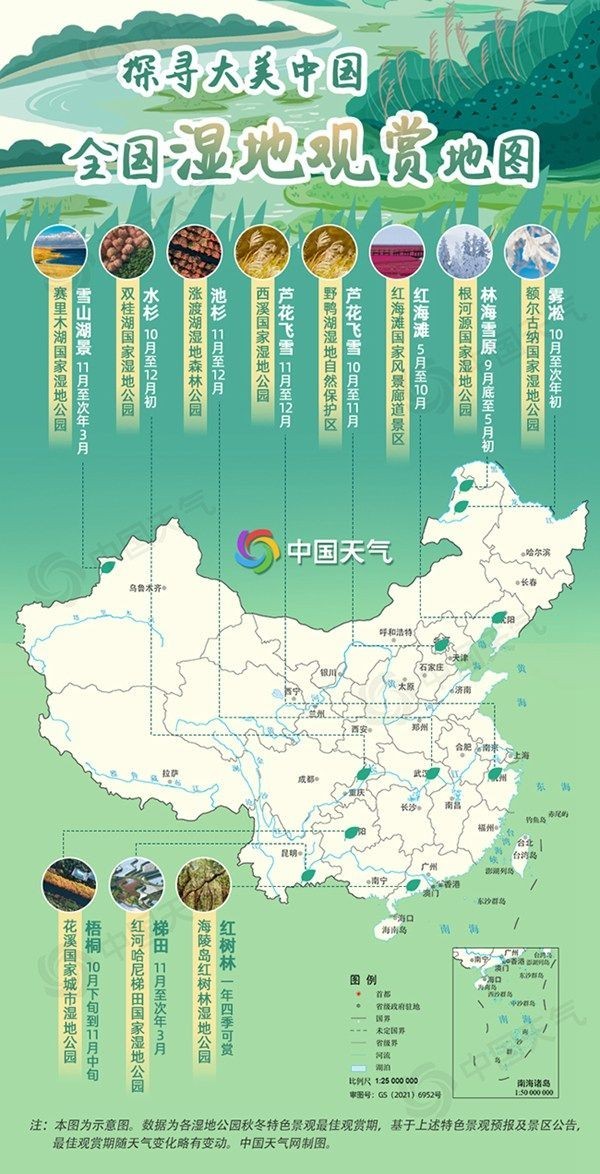 濕地不僅能為人們提供四季不同的可觀賞景觀,還是十分重要的自然生態(tài)系統(tǒng),為大量的動植物提供棲息地,既能保護生物的多樣性,也能調(diào)節(jié)氣候、凈化水質(zhì)。有興趣的朋友可根據(jù)最佳觀賞期前往觀賞,提醒大家出游仍需注意佩戴口罩,做好健康防護工作。(中國天氣網(wǎng) 文/江漪 設計/任成英 數(shù)據(jù)支持/李靚)