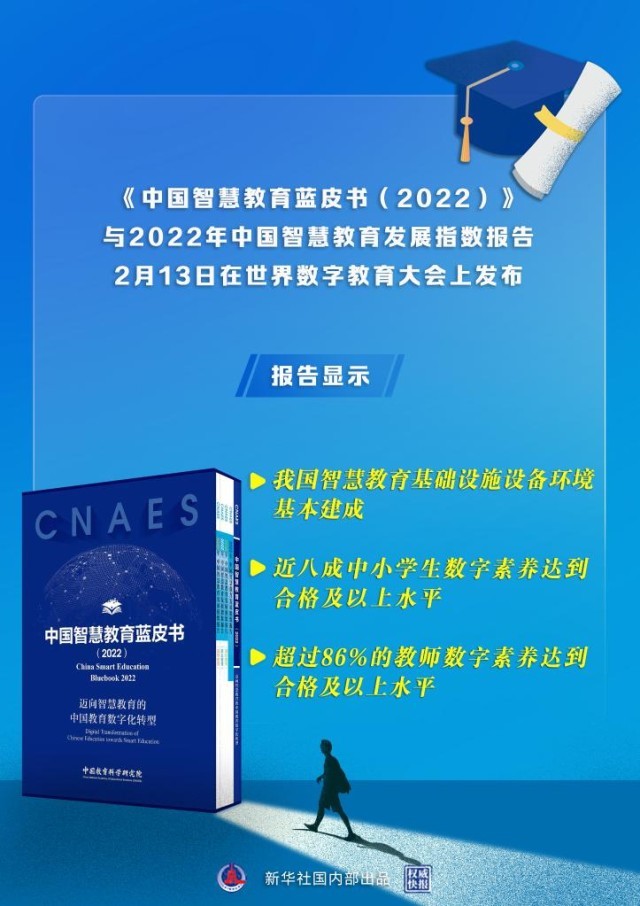 2月13日,在教育部與中國(guó)聯(lián)合國(guó)教科文組織全國(guó)委員會(huì)舉辦的世界數(shù)字教育大會(huì)上,《中國(guó)智慧教育藍(lán)皮書(shū)(2022)》與2022年中國(guó)智慧教育發(fā)展指數(shù)報(bào)告發(fā)布。