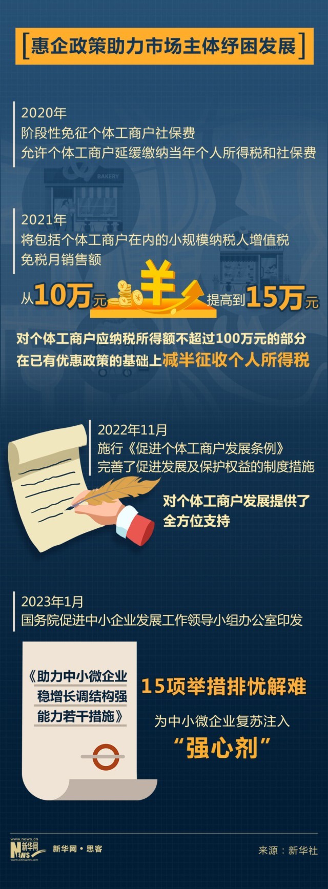 煥發(fā)個(gè)體經(jīng)濟(jì)生機(jī)活力,離不開稅收“輸血給氧”。近年來,各地區(qū)、各部門也出臺了一系列幫扶個(gè)體工商戶等小微市場主體發(fā)展的政策措施,精準(zhǔn)扶困。
