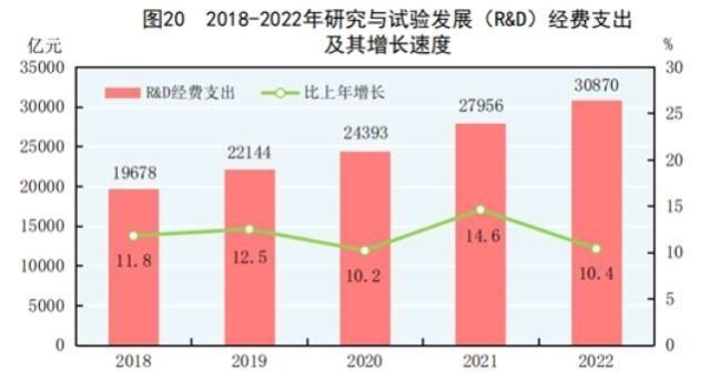 中國網(wǎng)財經(jīng)2月28日訊 國家統(tǒng)計局28日發(fā)布的2022年國民經(jīng)濟和社會發(fā)展統(tǒng)計公報顯示,2022年,全年研究與試驗發(fā)展(R&D)經(jīng)費支出30870億元,比上年增長10.4%,與國內生產(chǎn)總值之比為2.55%,其中基礎研究經(jīng)費1951億元。國家自然科學基金共資助5.19萬個項目。截至年末,正在運行的國家重點實驗室533個,納入新序列管理的國家工程研究中心191個,國家企業(yè)技術中心1601家,大眾創(chuàng)業(yè)萬眾創(chuàng)新示范基地212家。國家科技成果轉化引導基金累計設立36支子基金,資金總規(guī)模624億元。國家級科技企業(yè)孵化器1425家,國家備案眾創(chuàng)空間2441家。