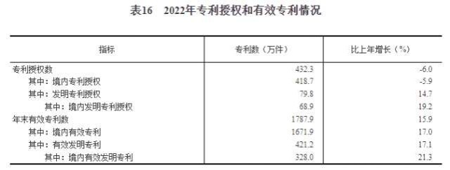 全年授予專利權432.3萬件,比上年下降6.0%;PCT專利申請受理量7.4萬件。截至年末,有效專利1787.9萬件,其中境內有效發(fā)明專利328.0萬件。每萬人口高價值發(fā)明專利擁有量9.4件。全年商標注冊617.7萬件,比上年下降20.2%。全年共簽訂技術合同77萬項,技術合同成交金額47791億元,比上年增長28.2%。我國公民具備科學素質的比例達到12.93%。