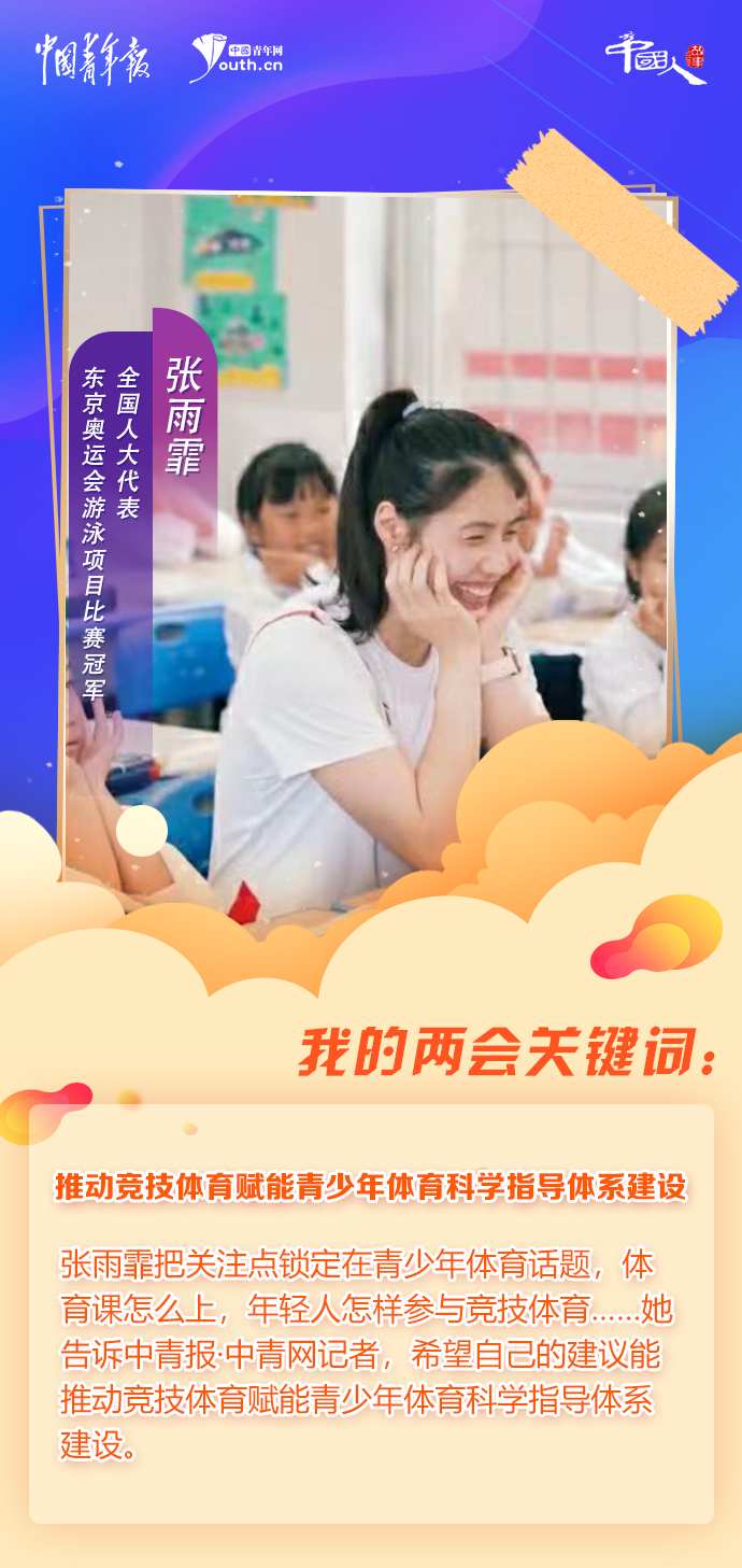 奧運會冠軍如何履職?張雨霏把關(guān)注點鎖定在青少年體育話題,體育課怎么上,年輕人怎樣參與競技體育……她告訴中青報·中青網(wǎng)記者,希望自己的建議能推動競技體育賦能青少年體育科學(xué)指導(dǎo)體系建設(shè)。