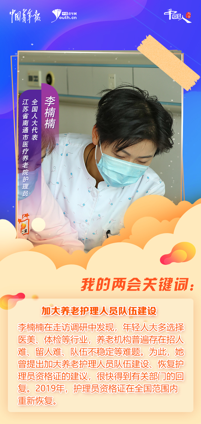 同樣是連任的全國人大代表,李楠楠投身養(yǎng)老護理行業(yè)已有10年。此前5年的履職經(jīng)歷,讓她深刻感受到一份建議能帶來的改變。