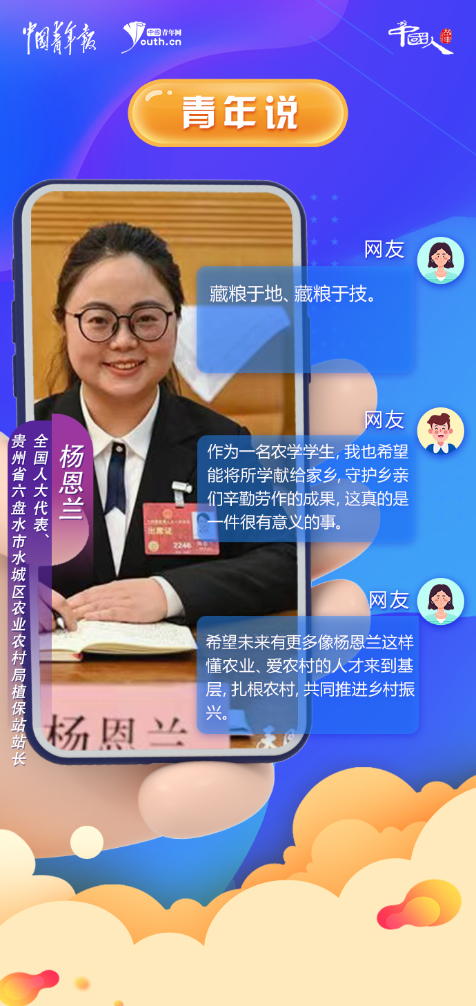 因此,她表示:“要從本職工作出發(fā),關(guān)注鄉(xiāng)村振興和糧食安全等方面的問題?!?/p>