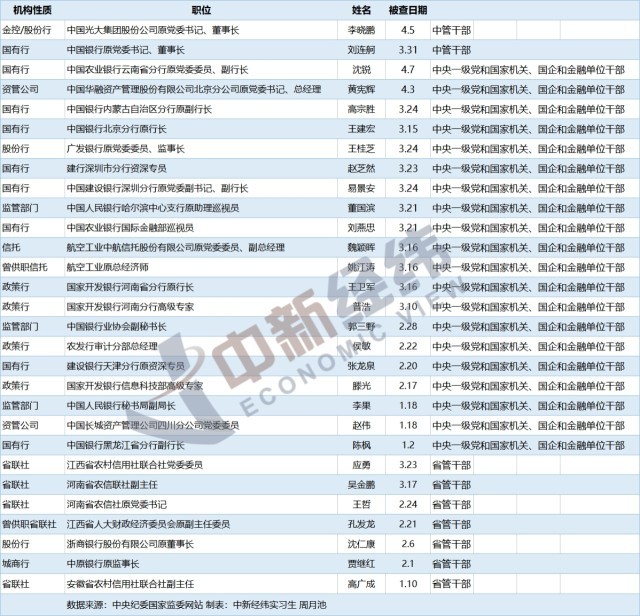 反腐重拳出擊!金融系統(tǒng)年內(nèi)至少29人被查,9人出自國有行