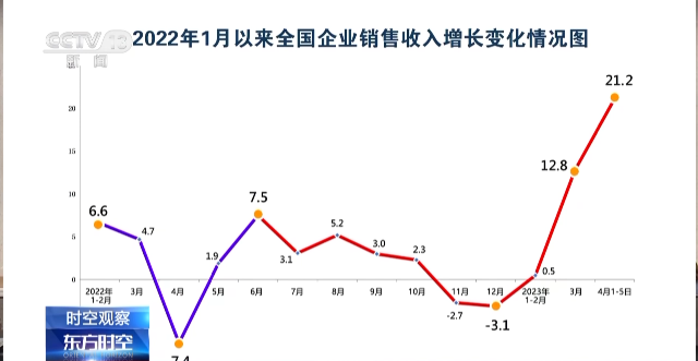 王軍表示,稅收是經(jīng)濟的晴雨表。企業(yè)有生產(chǎn)就有銷售,有銷售就要開票。稅收大數(shù)據(jù)顯示,今年以來企業(yè)銷售增速逐步回升,一季度同比增長4.7%;較去年四季度環(huán)比提升6.2個百分點。企業(yè)對未來生產(chǎn)經(jīng)營的信心也在轉強。