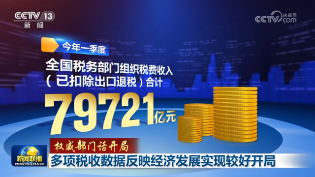 一季度,全國稅務(wù)部門組織稅費收入合計79721億元,其中,稅收收入46756億元,同比增長0.5%,實現(xiàn)良好開局。
