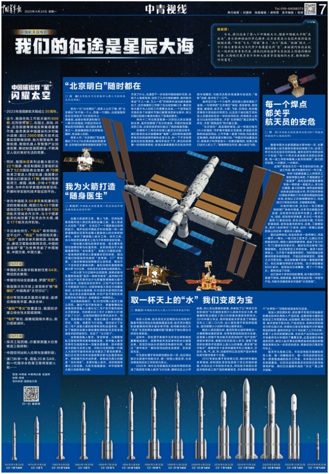 今天,我們迎來(lái)了第八個(gè)中國(guó)航天日。隨著中國(guó)航天不斷“走出去”,昔日的神秘面紗早已揭開(kāi),近年來(lái)更是以自信開(kāi)放的姿態(tài)頻頻出圈:“神舟”飛天,“嫦娥”奔月,“北斗”指路,“祝融”探火,一個(gè)個(gè)國(guó)之重器成為當(dāng)代青少年最?lèi)?ài)追的“星”。本版邀約奮戰(zhàn)在航天一線的優(yōu)秀青年代表,請(qǐng)他們講述逐夢(mèng)太空征途上創(chuàng)造的精彩故事,以期吸引更多青少年加入探索宇宙奧秘的大軍,格物致知、叩問(wèn)蒼穹。