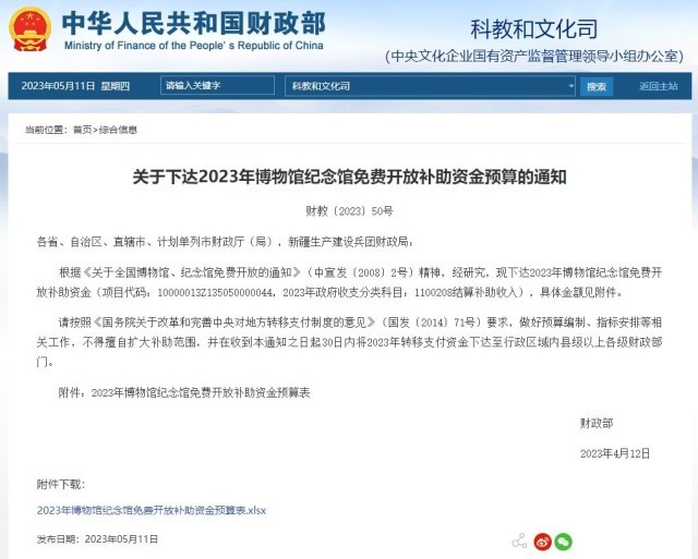 財(cái)政部:2023年博物館紀(jì)念館免費(fèi)開放補(bǔ)助資金預(yù)算下達(dá)