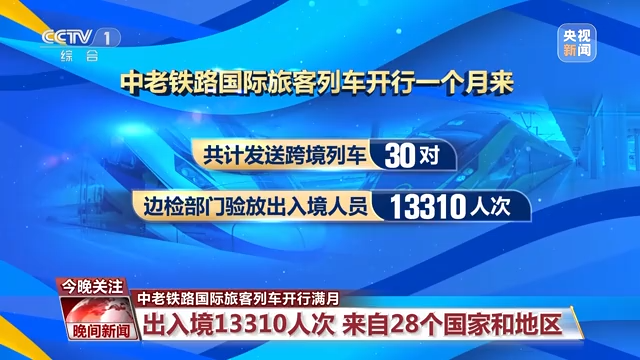 中老鐵路國際旅客列車開行一個月來,共計發(fā)送跨境列車30對,邊檢部門驗放出入境人員13310人次。從地域來看,這些出入境旅客分別來自28個國家和地區(qū),其中,來自中國、老撾和泰國的旅客人數(shù)居多。從出入境的情況來看,入境7024人次,出境6286人次,入境人數(shù)比出境人數(shù)多11.7%。入境的外籍旅客中大多是來中國旅游、留學(xué)和考察市場的。