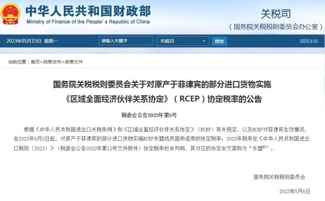 6月2日起中國(guó)將與菲律賓相互實(shí)施RCEP關(guān)稅減讓