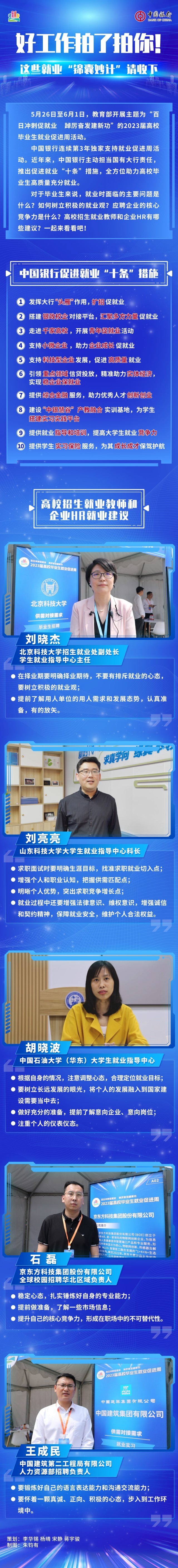 5月26日至6月1日,教育部開展主題為“百日沖刺促就業(yè)距厲奮發(fā)建新功”的2023屆高校畢業(yè)生就業(yè)促進周活動。中國銀行連續(xù)第3年獨家支持就業(yè)促進周活動。近年來,中國銀行主動擔(dān)當(dāng)國有大行責(zé)任推出促進就業(yè)“十條”措施,全方位助力高校畢業(yè)生高質(zhì)量充分就業(yè)。對于畢業(yè)生來說,就業(yè)時面臨的主要問題是什么? 如何樹立積極的就業(yè)觀? 應(yīng)聘企業(yè)的核心競爭力是什么? 高校招生就業(yè)教師和企業(yè)HR有哪些建議? 一起來看看吧?。ㄖ袊嗄昃W(wǎng)記者 李華錫 楊晴 宋靜 蔣宇駿 朱鈞有)