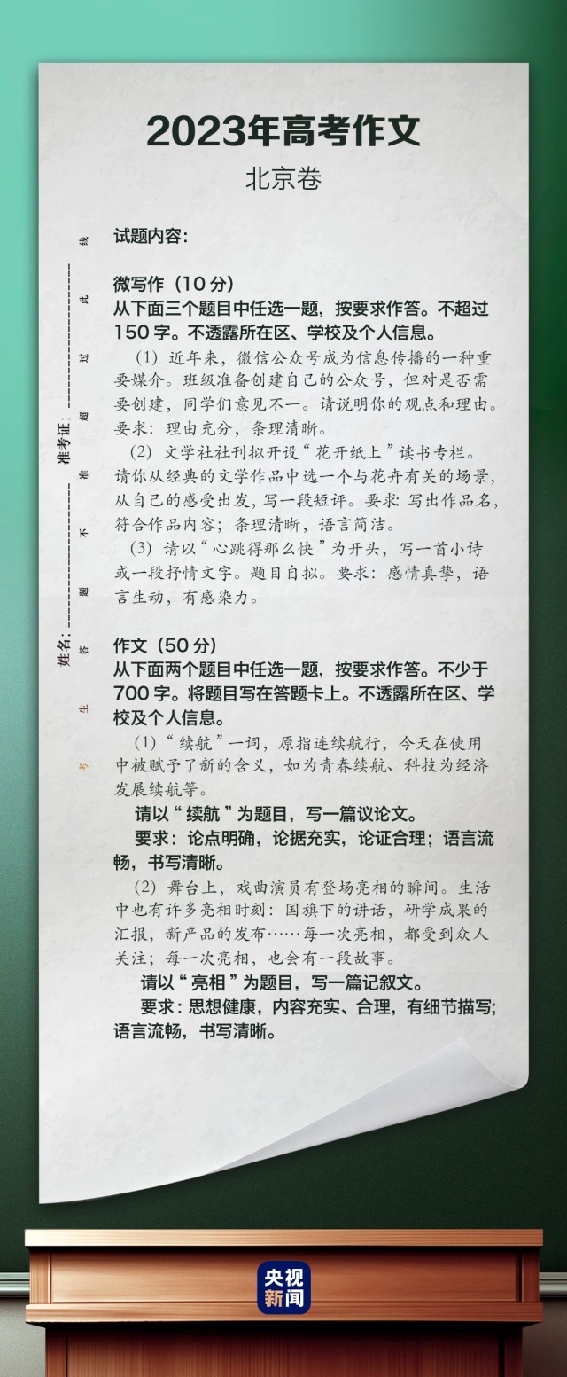 - 2023高考北京語文作文題公布:“續(xù)航”和 “亮相” 二選一