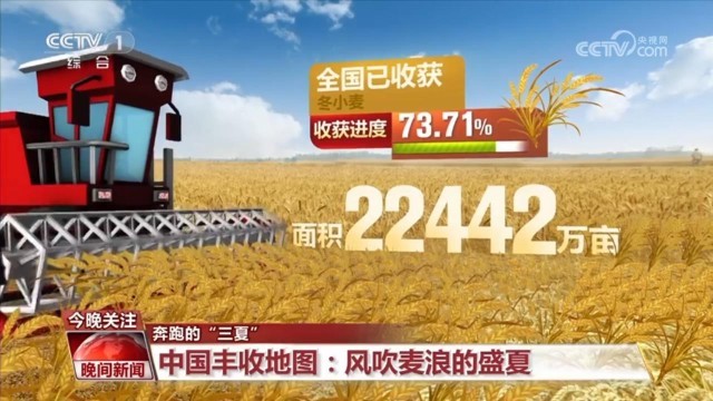 央視網(wǎng)消息:夏糧搶收忙,顆粒皆歸倉(cāng)。讓我們繼續(xù)打開(kāi)本周的中國(guó)豐收地圖,去各地的農(nóng)田里,感受夏收的喜悅與繁忙。