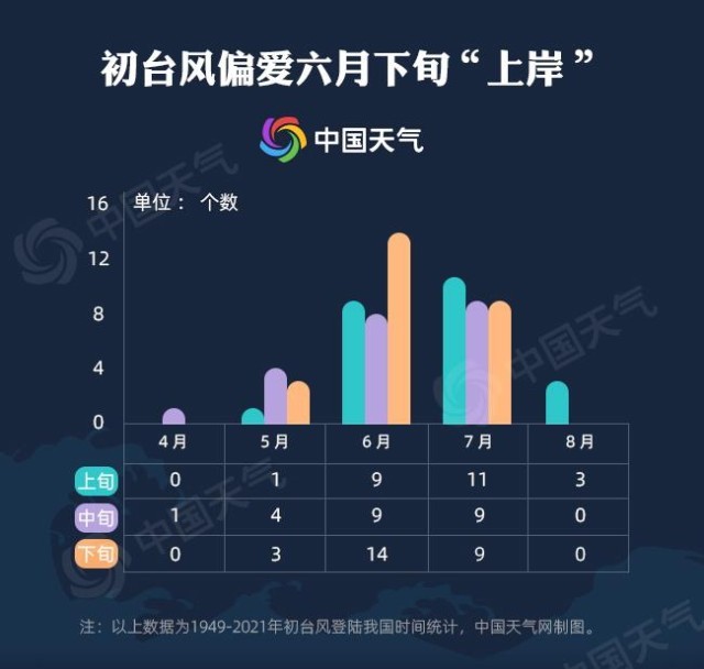 根據(jù)預(yù)報,這個熱帶系統(tǒng)或?qū)⒂?月17日至18日左右在廣東到海南一帶沿海登陸。據(jù)中國天氣網(wǎng)大數(shù)據(jù)顯示,一般首個登陸我國的臺風多集中在每年的6月至7月,其中,6月下旬登陸的比例最高,7月上旬登陸比例位列第二。
