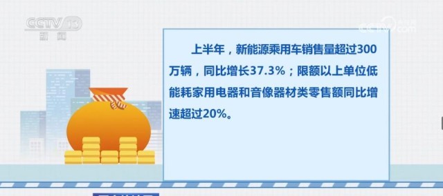 隨著居民消費理念轉(zhuǎn)變,促進消費提質(zhì)升級政策顯效,消費新動能持續(xù)增強。上半年,新能源乘用車銷售量超過300萬輛,同比增長37.3%;限額以上單位低能耗家用電器和音像器材類零售額同比增速超過20%。