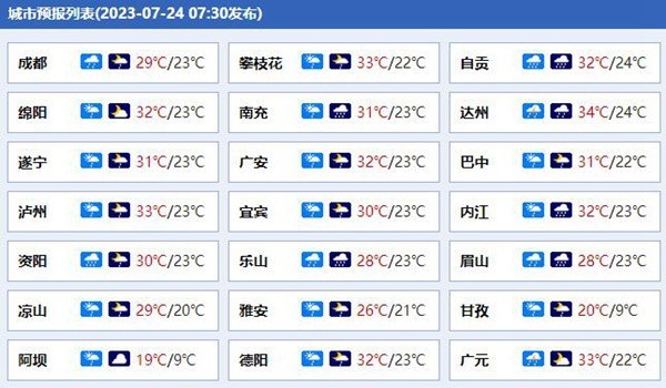 四川各城市預(yù)報。(來源:中國天氣網(wǎng))