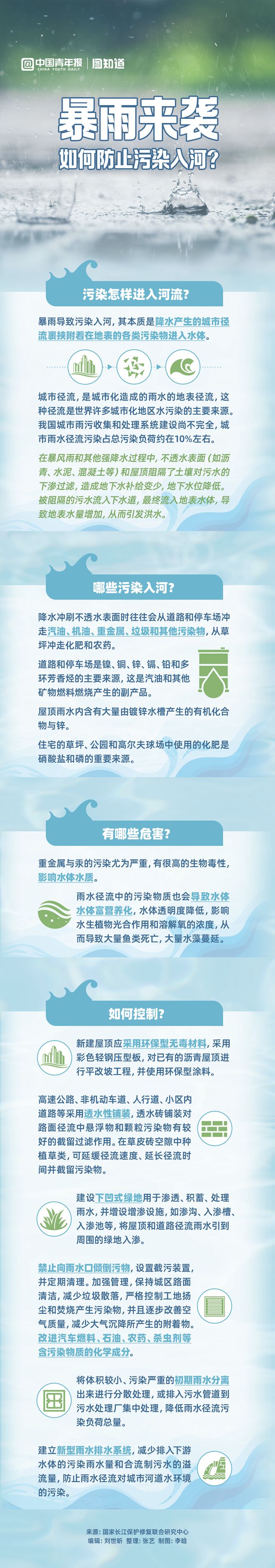 近日,臺風(fēng)“杜蘇芮”給我國多地帶來暴雨甚至大暴雨。中央氣象臺今天繼續(xù)發(fā)布暴雨紅色預(yù)警。暴雨來襲,哪些污染物會被沖進河流?它們?nèi)绾斡绊懞恿?,又該如何控制?讀圖了解。