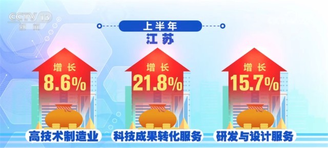 江蘇、浙江、安徽把創(chuàng)新當(dāng)做制造業(yè)升級的著力點(diǎn)。上半年,江蘇高技術(shù)制造業(yè)增長8.6%,科技成果轉(zhuǎn)化服務(wù)、研發(fā)與設(shè)計(jì)服務(wù)分別增長21.8%和15.7%。浙江上半年,科學(xué)研究和技術(shù)服務(wù)業(yè)投資增長52.2%。規(guī)模以上工業(yè)中,新產(chǎn)品產(chǎn)值率已經(jīng)達(dá)到41.4%,并在持續(xù)提高。安徽上半年裝備制造業(yè)增加值增長了15.3%,汽車產(chǎn)業(yè)增長42.6%,光伏產(chǎn)業(yè)增長了一倍。