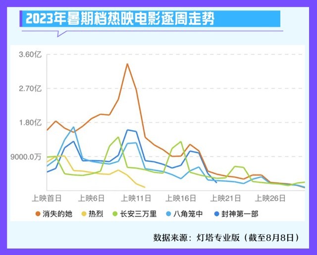 《消失的她》《八角籠中》《長(zhǎng)安三萬(wàn)里》穩(wěn)坐7月票房榜前三,值得注意的是,它們均非頭部大作。