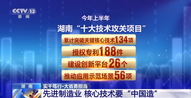 今年上半年,湖南“十大技術攻關項目”累計突破關鍵核心技術134項,授權專利188件,建設創(chuàng)新平臺26個,推動應用示范場景56項。與此同時,湖南正在加快推進省級“四大實驗室”的建設,為先進制造業(yè)創(chuàng)新研發(fā)提供基礎研究和成果轉化的保障。