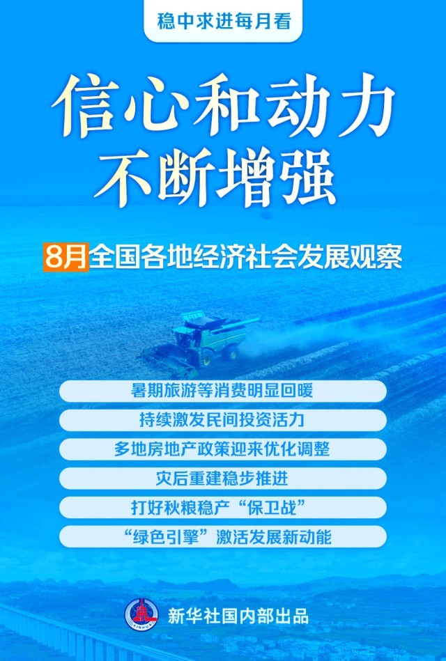 穩(wěn)中求進(jìn)每月看|信心和動(dòng)力不斷增強(qiáng)——8月全國各地經(jīng)濟(jì)社會(huì)發(fā)展觀察