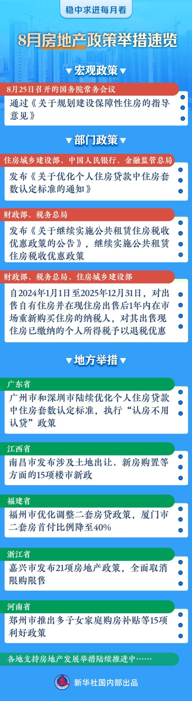 8月以來,各地購房者頻頻收到利好消息:江西省南昌市發(fā)布涉及土地出讓、新房購置等方面的15項(xiàng)樓市新政;廈門市二套房首付比例降至40%;嘉興市全面取消限購限售;鄭州市推出多子女家庭購房補(bǔ)貼等15項(xiàng)利好政策……
