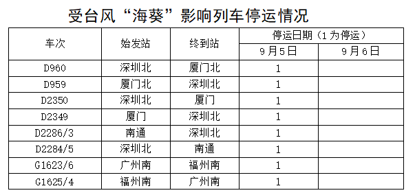 臺(tái)風(fēng)“海葵”登陸 南鐵動(dòng)態(tài)調(diào)整旅客列車運(yùn)行方案