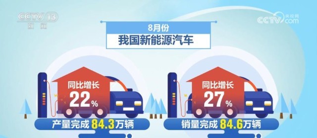 中國(guó)汽車工業(yè)協(xié)會(huì)的數(shù)據(jù)顯示,8月份,我國(guó)新能源汽車產(chǎn)銷量分別完成84.3萬輛和84.6萬輛,同比分別增長(zhǎng)22%和27%,市場(chǎng)占有率達(dá)到32.8%。1月—8月,新能源汽車產(chǎn)銷分別完成543.4萬輛和537.4萬輛,同比分別增長(zhǎng)36.9%和39.2%。