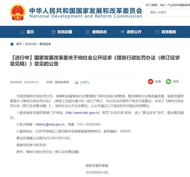 國家發(fā)改委進一步規(guī)范煤炭行政處罰行為