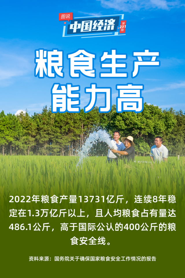 今年以來,極端氣候干擾全球農業(yè)生產(chǎn),關于糧食安全的擔憂在全球蔓延。就我國糧食生產(chǎn)情況而言,國務院關于確保國家糧食安全工作情況的報告顯示,2022年,我國糧食產(chǎn)量13731億斤,連續(xù)8年穩(wěn)定在1.3萬億斤以上,且人均糧食占有量達486.1公斤,高于國際公認的400公斤的糧食安全線。