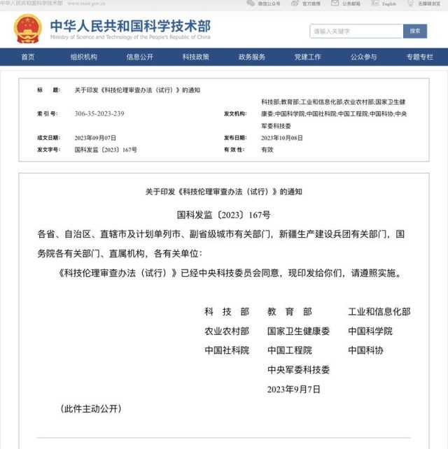 中國青年報(bào)客戶端北京10月8日電(中青報(bào)·中青網(wǎng)記者 張茜)記者今天從科技部網(wǎng)站獲悉,科技部、教育部、工業(yè)和信息化部等10部門聯(lián)合發(fā)布《科技倫理審查辦法(試行)》,對(duì)科技倫理審查主體、審查程序、監(jiān)督管理等內(nèi)容作出明確規(guī)定。