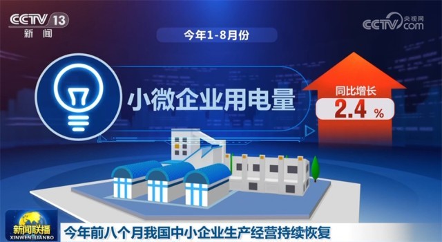 最新數(shù)據(jù)顯示,今年1—8月份,小微企業(yè)用電量同比增長(zhǎng)2.4%。其中,“小巨人”企業(yè)、專精特新中小企業(yè)用電量同比分別增長(zhǎng)12.7%、9.6%。隨著一系列穩(wěn)增長(zhǎng)政策措施集中發(fā)力,8月份,中小企業(yè)信心指數(shù)達(dá)61.9%,采購(gòu)指數(shù)50.6%,分別較7月份上升0.7個(gè)百分點(diǎn)、0.3個(gè)百分點(diǎn)。