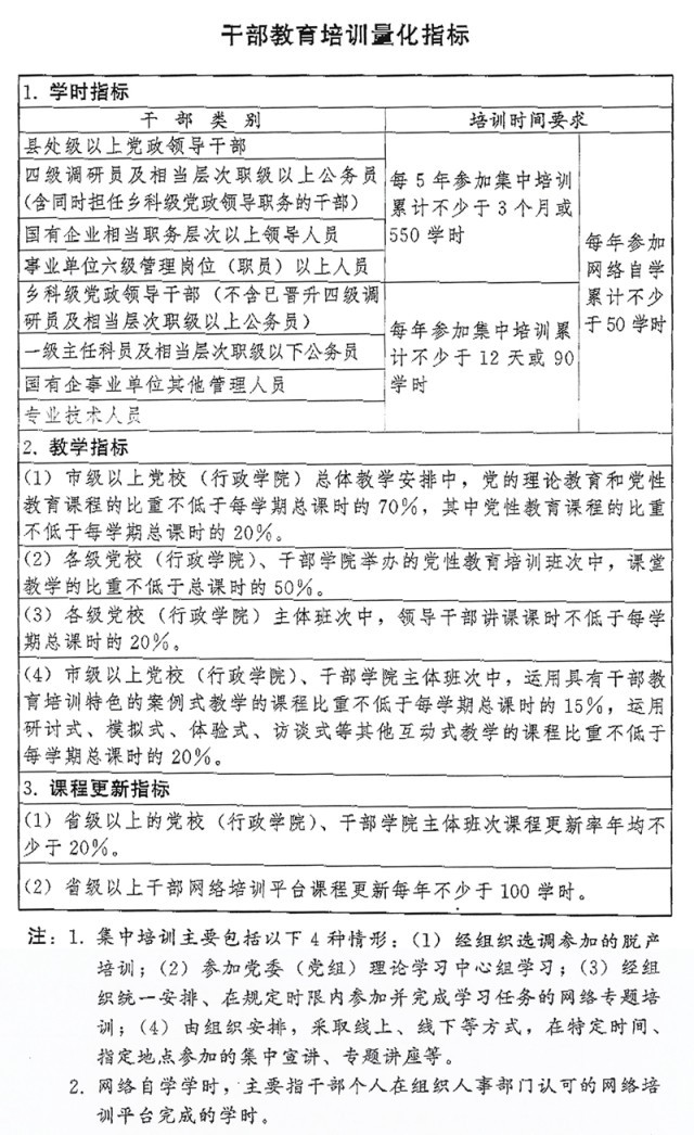 ?。ǘ熧Y隊(duì)伍建設(shè)。加大名師培養(yǎng)引進(jìn)力度,把干部教育培訓(xùn)師資納入各級(jí)人才政策支持范疇,努力造就一批對(duì)黨忠誠(chéng)、精通黨的創(chuàng)新理論、授課水平高、在學(xué)科領(lǐng)域有影響力的知名教師。完善專(zhuān)職教師知識(shí)更新和實(shí)踐鍛煉制度,加強(qiáng)師資隊(duì)伍黨性教育和業(yè)務(wù)培訓(xùn),國(guó)家級(jí)干部教育培訓(xùn)機(jī)構(gòu)每年培訓(xùn)2000名地方和部門(mén)行業(yè)培訓(xùn)機(jī)構(gòu)的骨干教師,省級(jí)黨校(行政學(xué)院)5年內(nèi)將市、縣兩級(jí)黨校(行政學(xué)院)教師培訓(xùn)一遍。鼓勵(lì)國(guó)家級(jí)干部教育培訓(xùn)機(jī)構(gòu)和省、市兩級(jí)黨校(行政學(xué)院)教師到基層黨校(行政學(xué)校)、?。ㄗ灾螀^(qū)、直轄市)黨性教育干部學(xué)院支教。評(píng)聘干部教育名師,推廣“名師帶徒”等方式,利用“名師工作室”等平臺(tái),加強(qiáng)中青年骨干教師培養(yǎng)。大力推進(jìn)領(lǐng)導(dǎo)干部上講臺(tái)。注重在領(lǐng)導(dǎo)干部、先進(jìn)模范人物、優(yōu)秀基層干部中遴選培養(yǎng)師資。分級(jí)建設(shè)師資庫(kù)。探索建立符合干部教育培訓(xùn)特點(diǎn)的師資隊(duì)伍考核評(píng)價(jià)體系和職稱(chēng)評(píng)審制度。